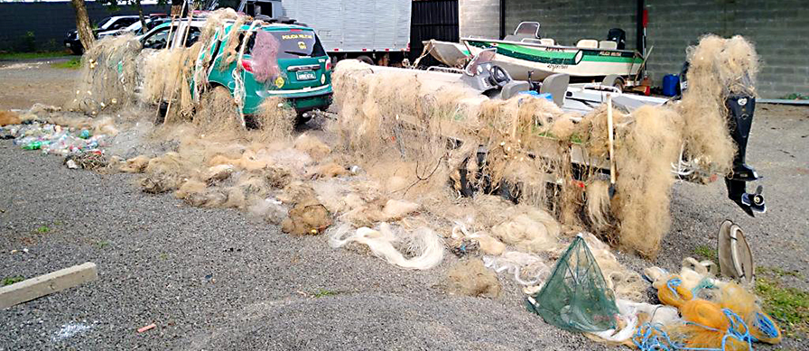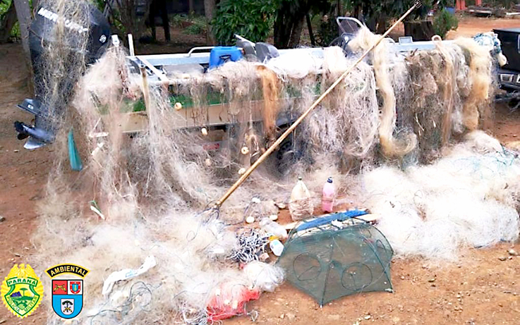 Entre os materiais que foram apreendidos, destacam-se a apreensão de 22.575 vinte e dois mil e quinhentos e setenta e cinco metros de redes de malhas diversas, além de 123,3 quilos de peixes que haviam sido pescados irregularmente. Também foram apreendidos 760 metros de espinhéis, 698 unidades outros petrechos, como varas, molinetes, covos e boias loucas.