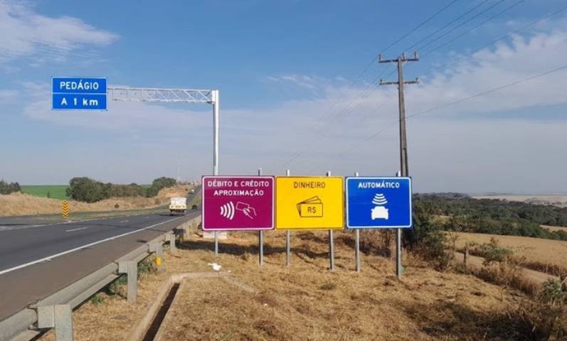 As placas foram implantadas em locais visíveis aos motoristas, às margens das rodovias, e têm três cores. A amarela direciona para cabines que aceitam o pagamento em dinheiro, forma mais tradicional para a maioria dos clientes.